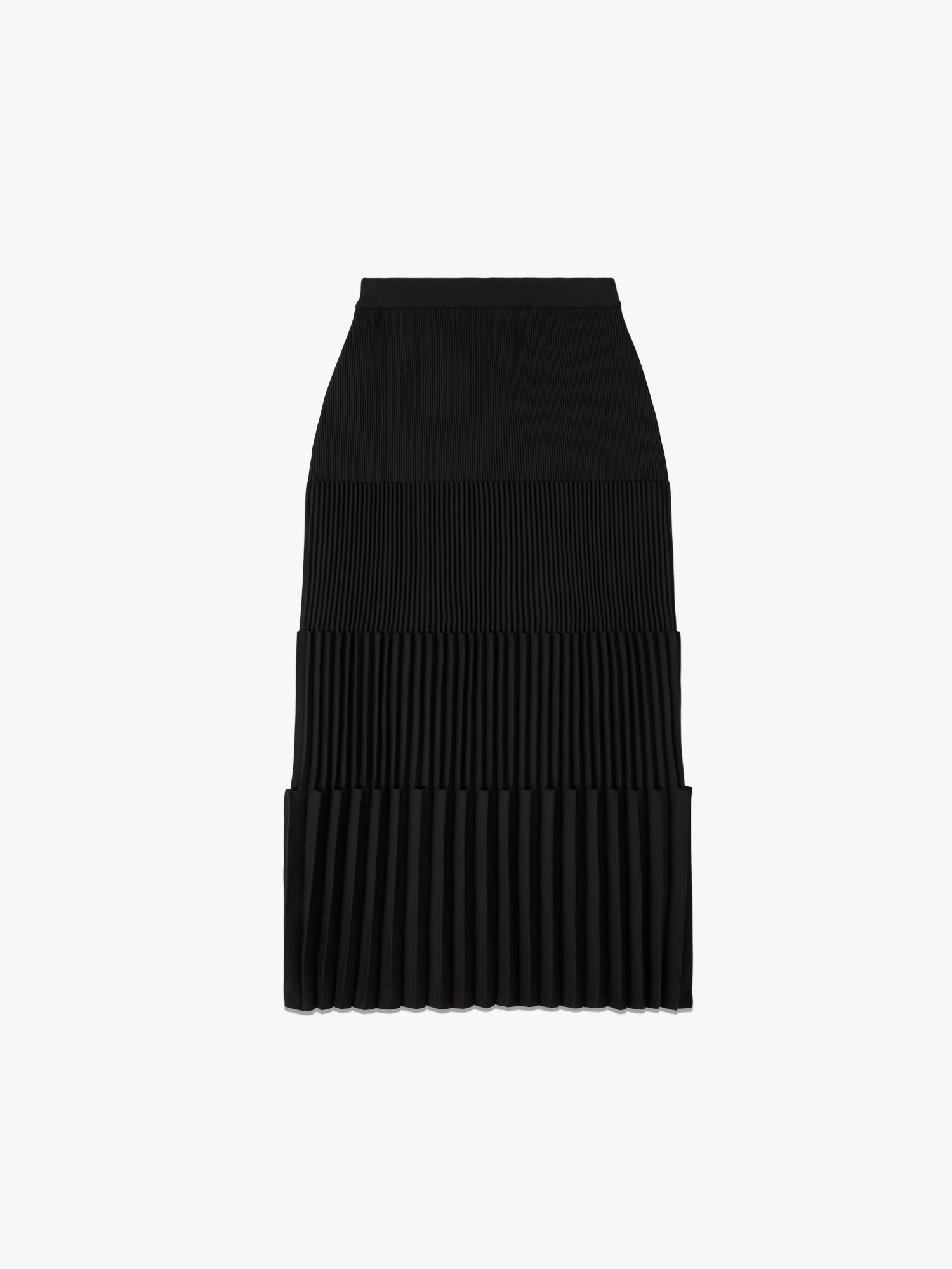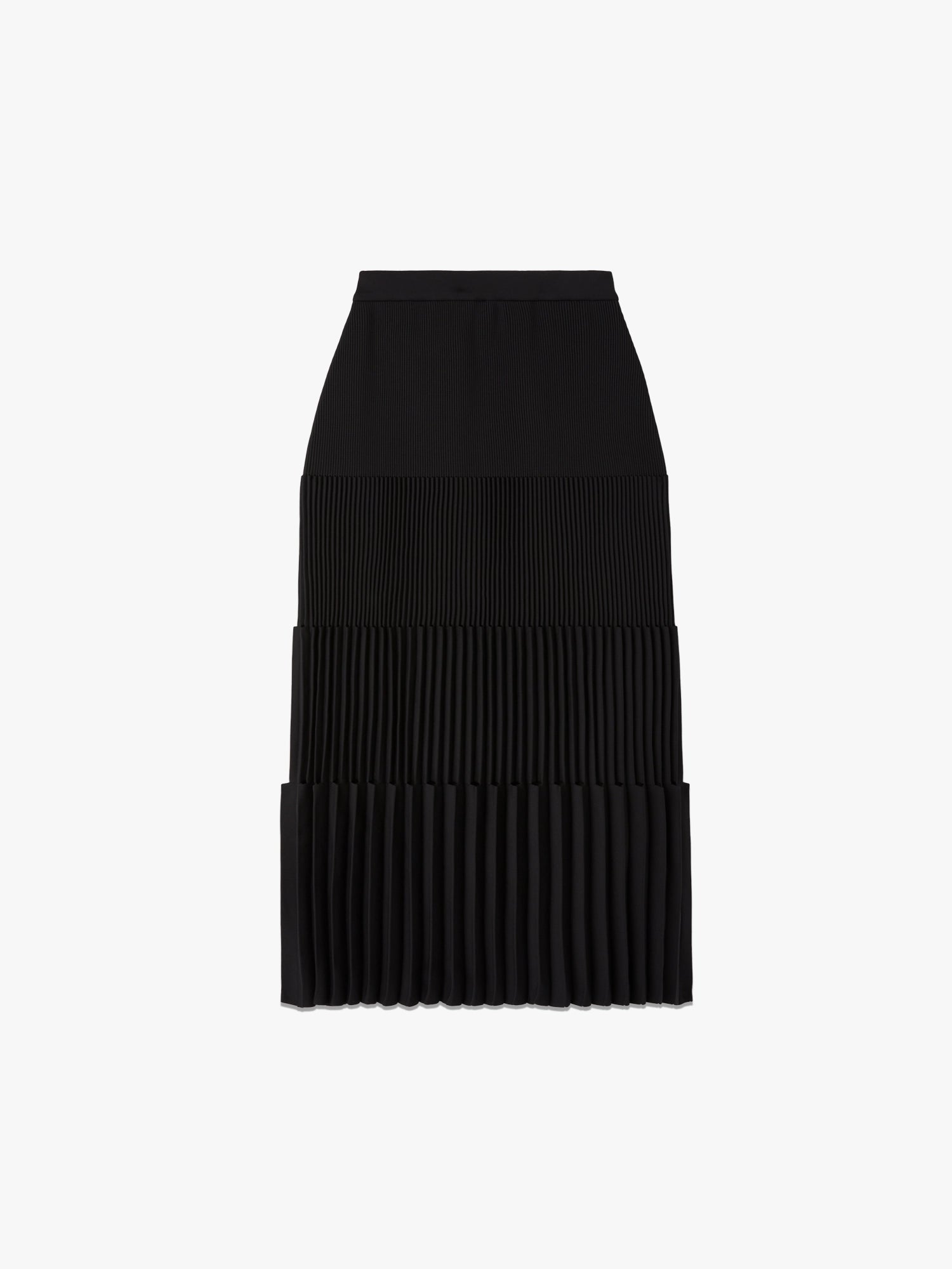 Features a knit structure with holes alternating between accordion pleats of varying widths