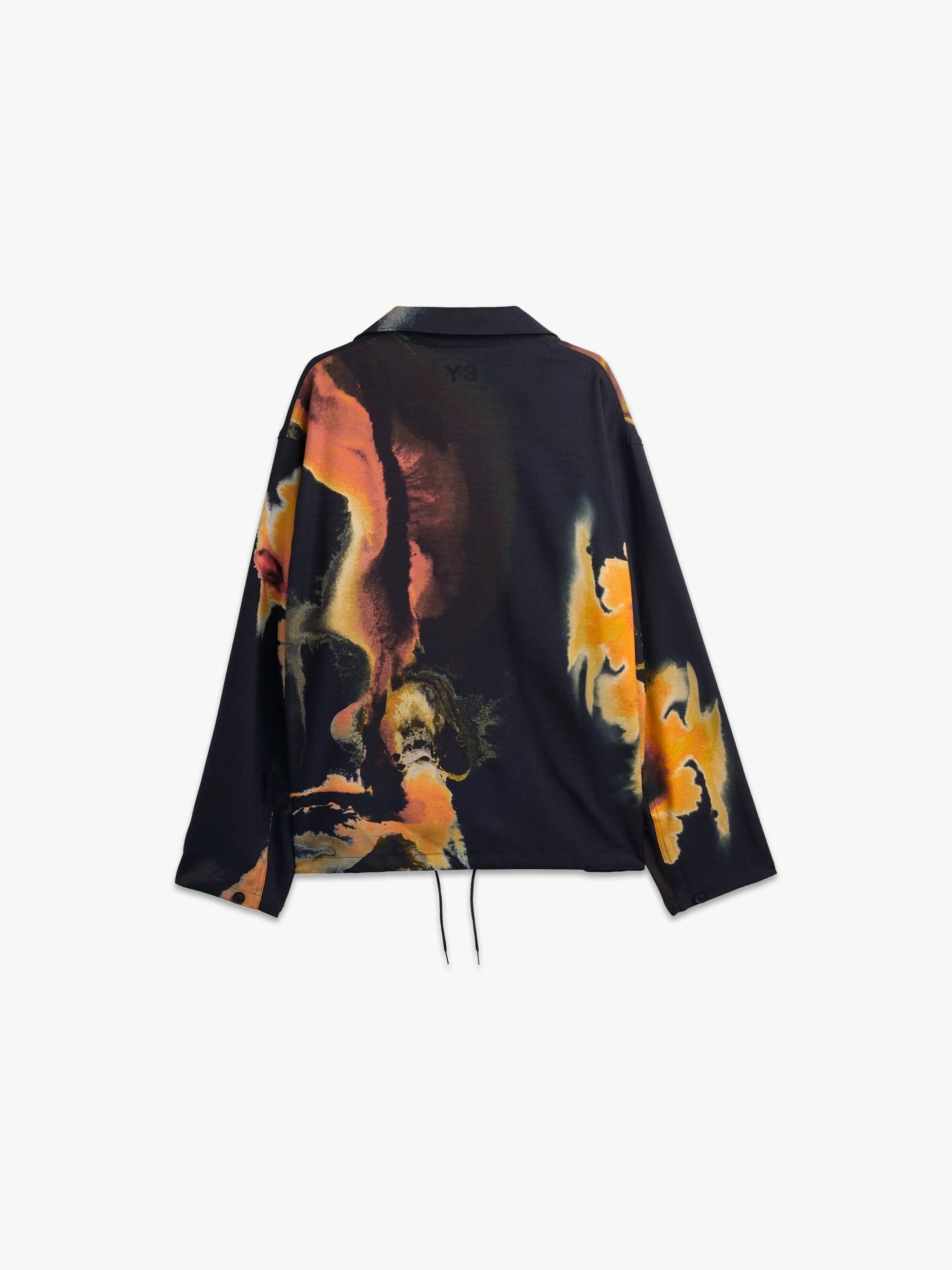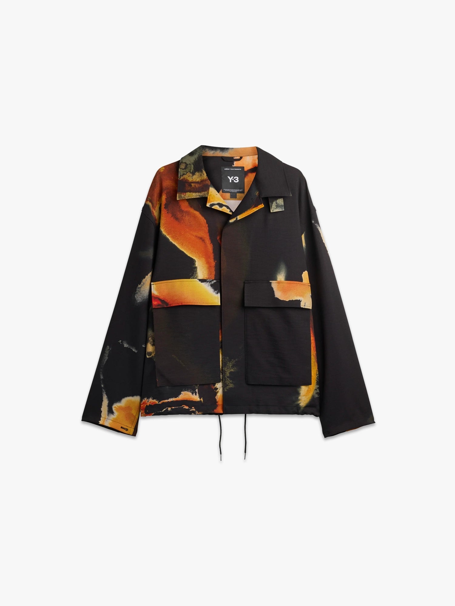 The Y-3 AOP Sport Uniform Coach Jacket exudes a casually cool attitude. It has an oversized fit and cargo pockets that add an element of utility. Inspired by amber ink, the unique print represents warmth and energy, transformation and beauty — expressed through its journey from subtle golden shades to rich oranges and browns.
