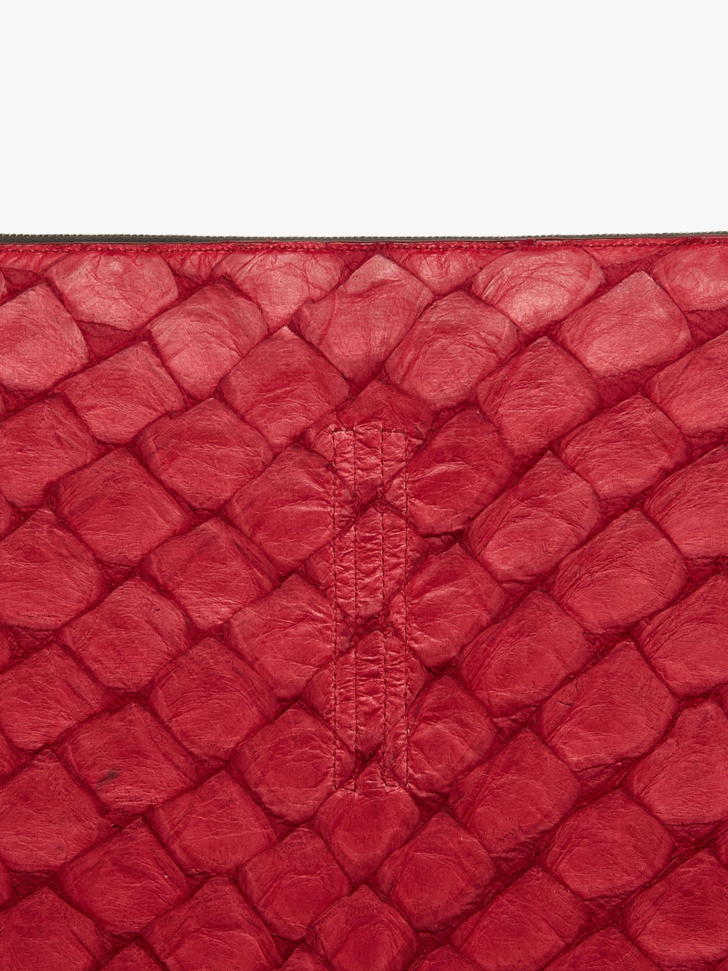 - This authentic Pirarucu fish skin has a soft, matte, waxy surface.