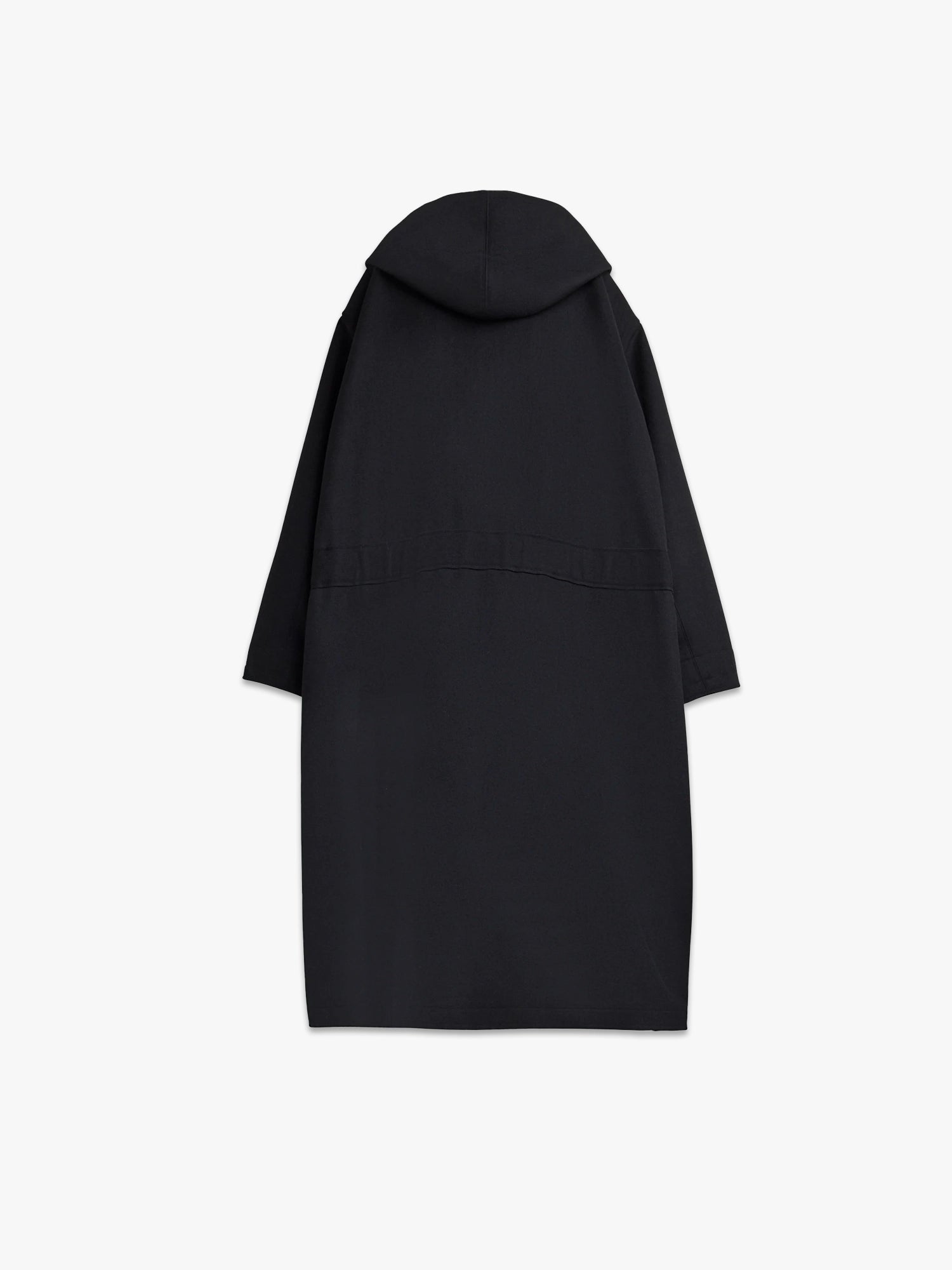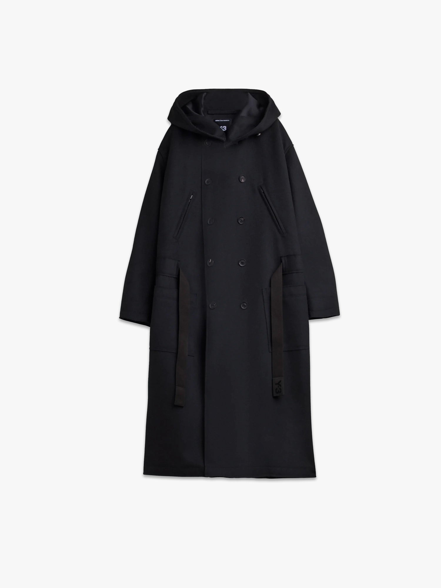 The Y-3 Bonded Melton Coat is a luxe, tailored expression of the Y-3 ethos. It's crafted in thick wool-blend melton fabric with utilitarian details such as a button closure at the hood and an integrated belt. Raw edge details add a luxe touch, and pockets offer effortless on-the-go storage.