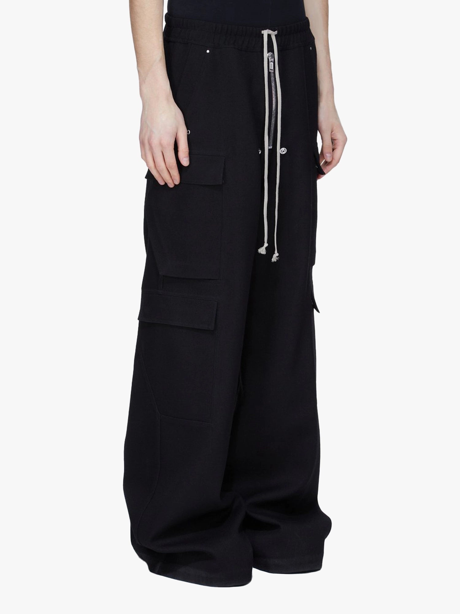 Rick Owens FW25 Concordians Runway Cargobelas in black wool drill