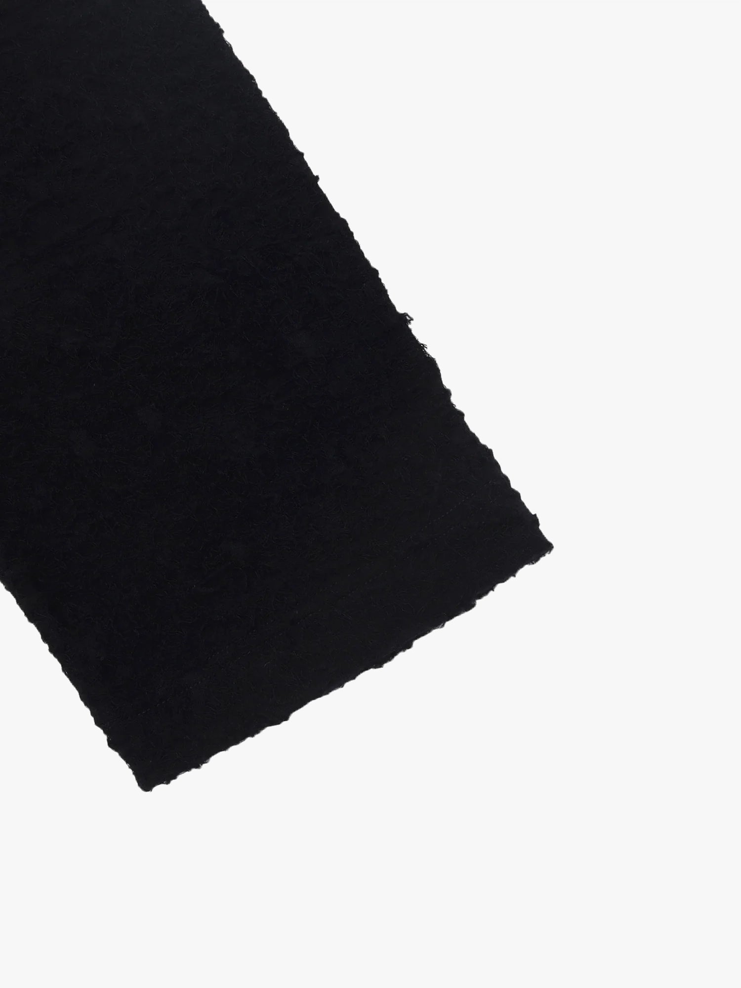 This long, collarless cardigan is crafted from 100% wool yarn and features a jacquard pattern. Its design showcases a unique, distressed look by utilizing sui-bi, which is carefully dissolved to enhance the garment's character.