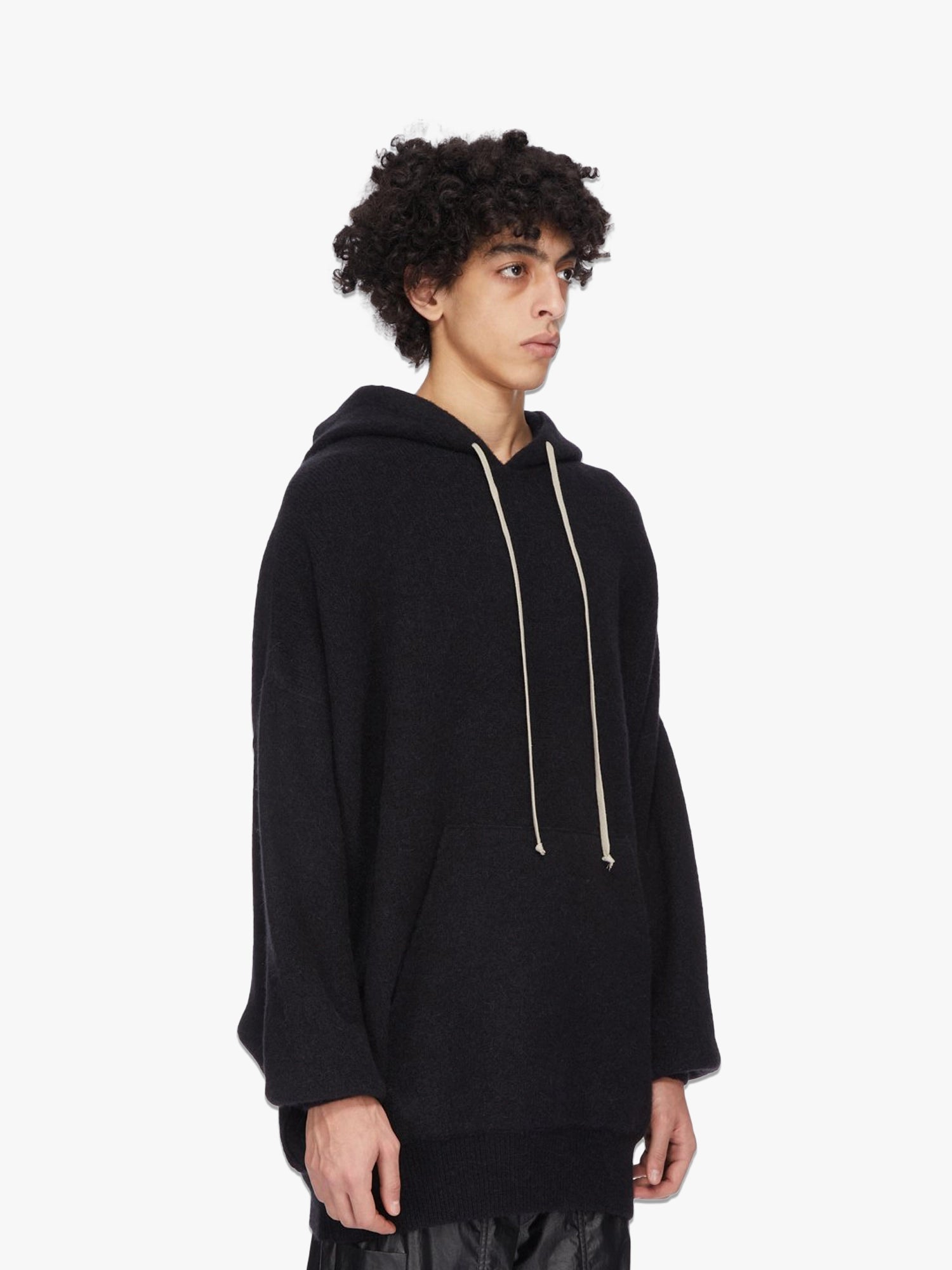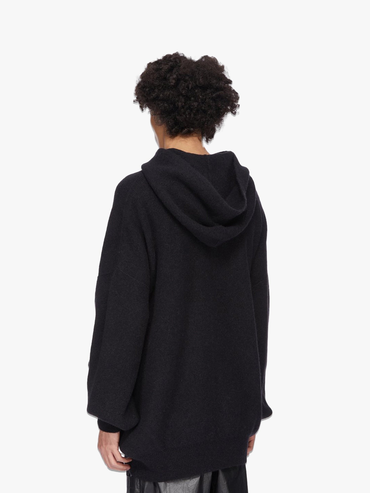 Rick Owens FW25 Concordians Runway Hun hoodie in black alpaca knit