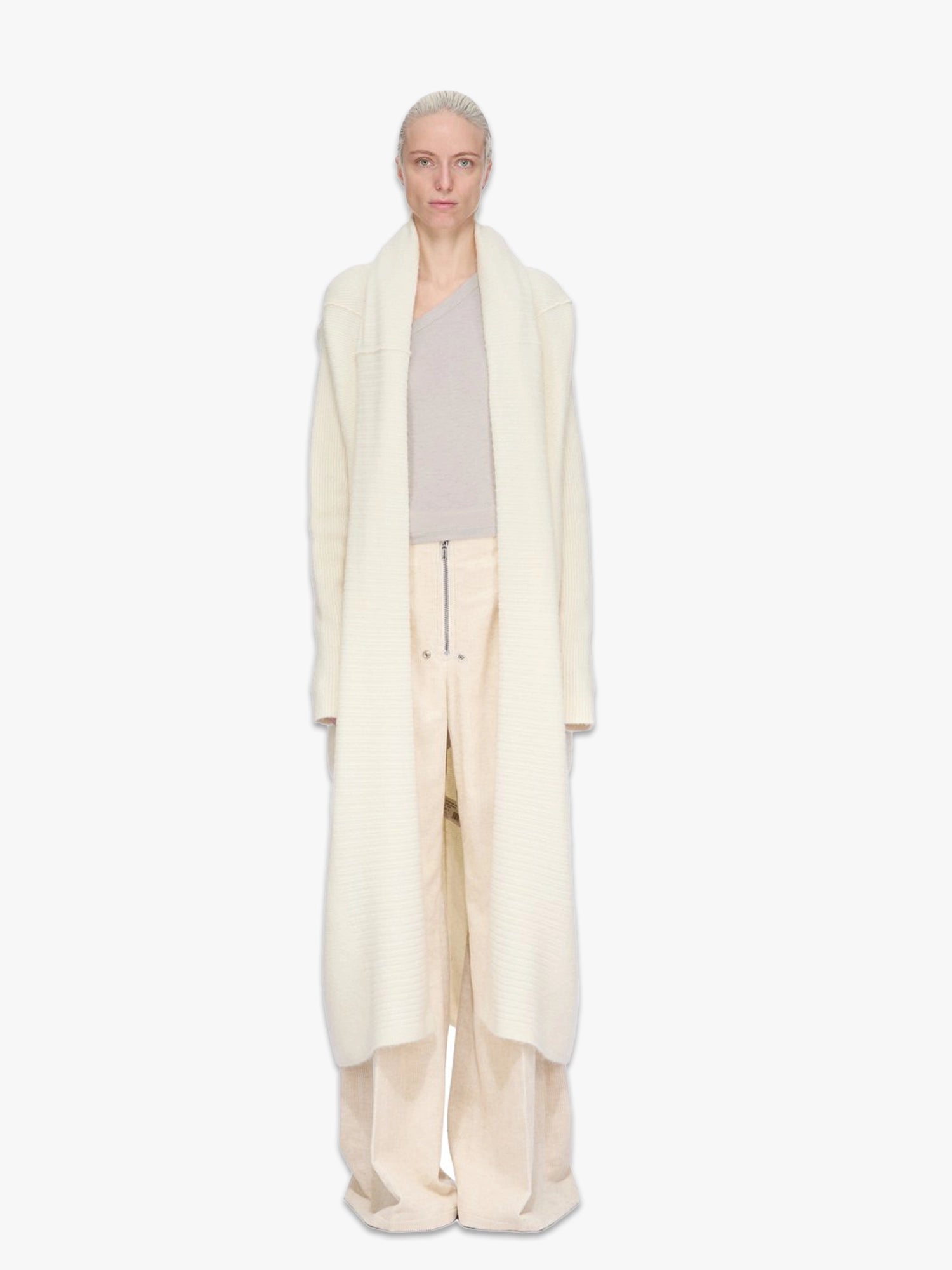 Rick Owens FW25 Concordians Long Cardigan in Milk alpaca knit