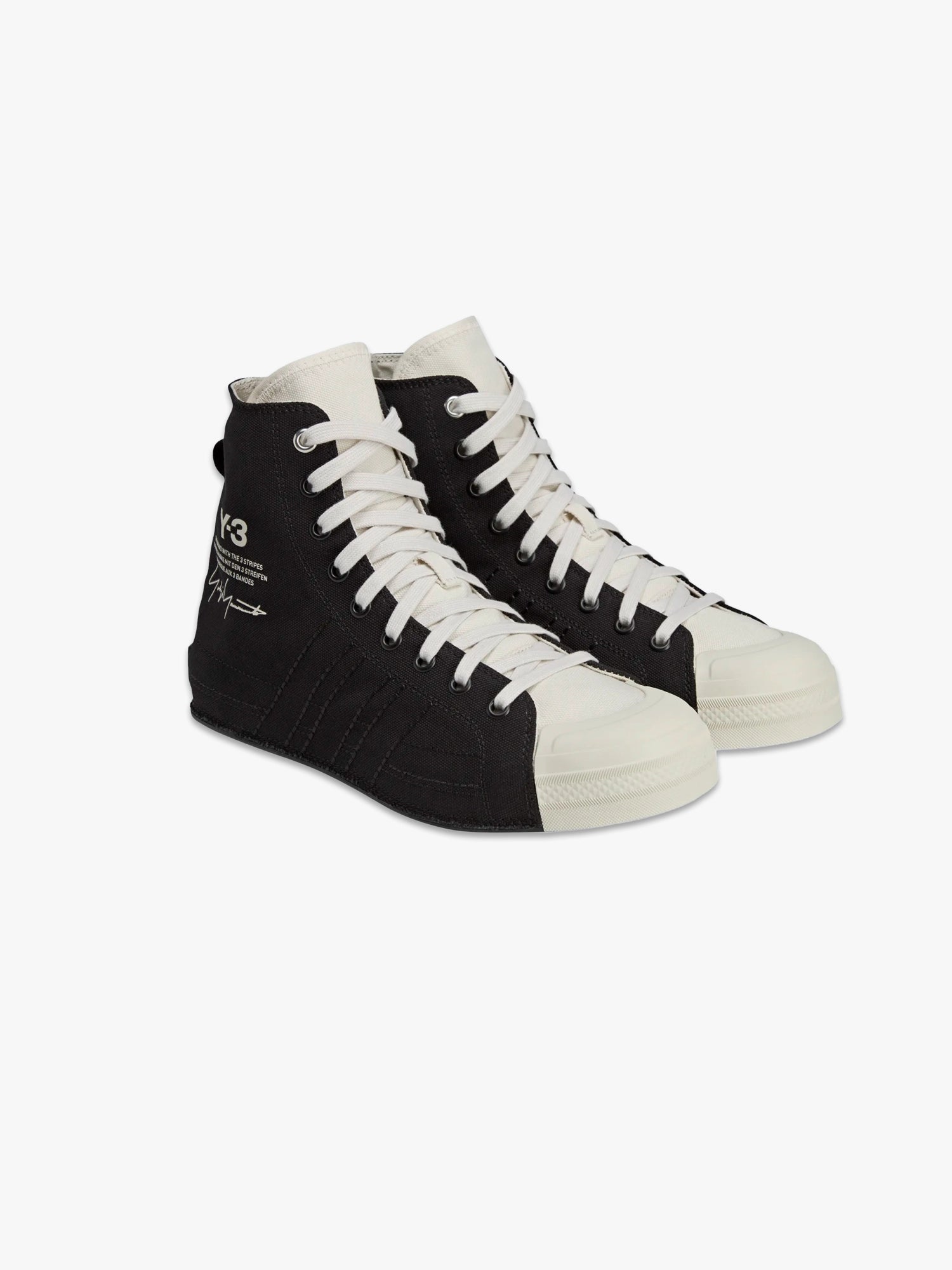 Y-3 once again disrupts adidas DNA to bring us a reimagining of sport style. The Y-3 Nizza Hi shoes completely reinterpret the adidas Nizza with a canvas upper that extends all the way to the outsole. In addition to classic details of the court silhouette, this version introduces a canvas and suede lining plus a removable Lightstrike midsole that elevate the sensation and energise it with running shoe-like responsiveness. Finishing touches include a Y-3 stacked logo graphic on the side and a Yohji Yamamoto signature on the heel patch.