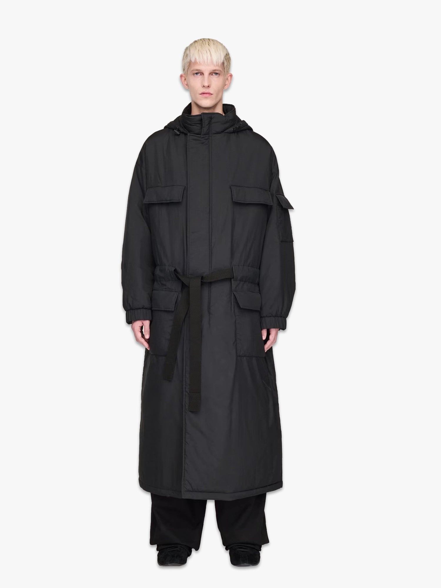 Y-3 explores the space where tradition meets modernity. The Y-3 Padded Hooded Parka is crafted in shell nylon with PrimaLoft® padding and multiple pockets. A removable belt lets you play with the shape and look of the coat, while bungee cords on the hood allow for custom coverage.