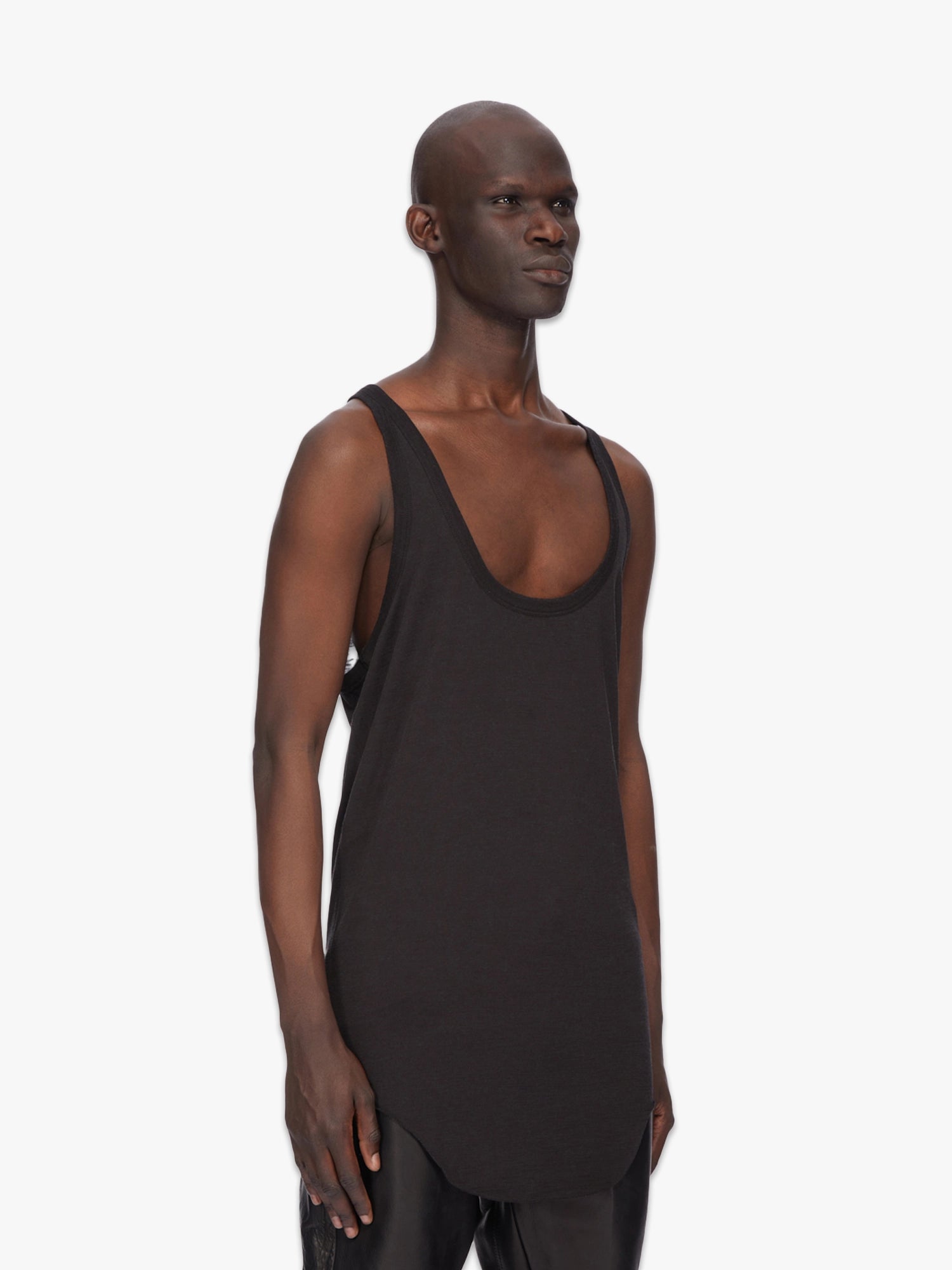 Rick Owens FW25 Concordians Runway Pony Tank in black silk wool jersey