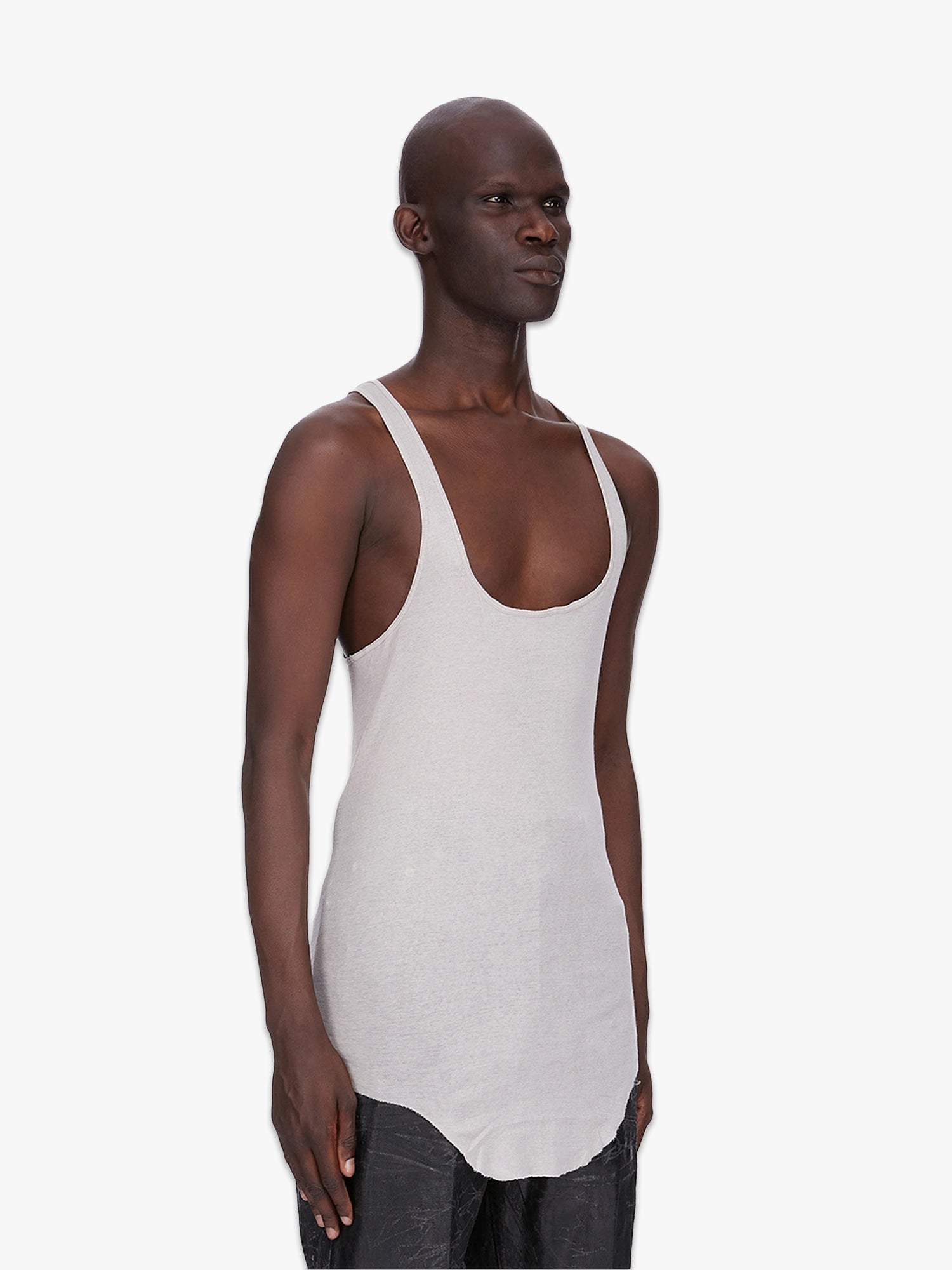 Rick Owens FW25 Concordians Runway Pony Tank slim in pearl mini rib jersey