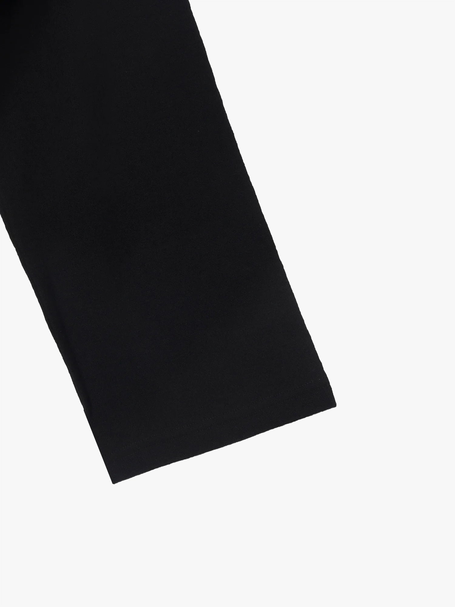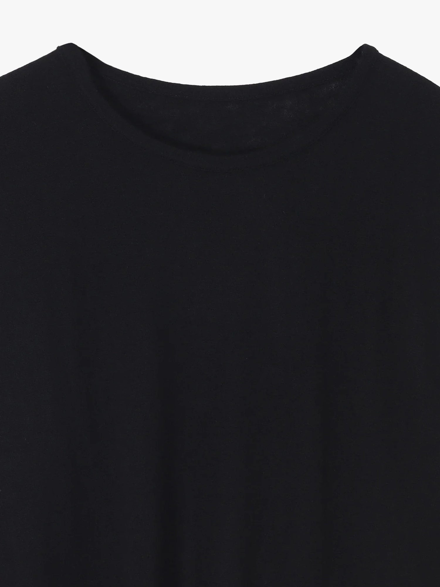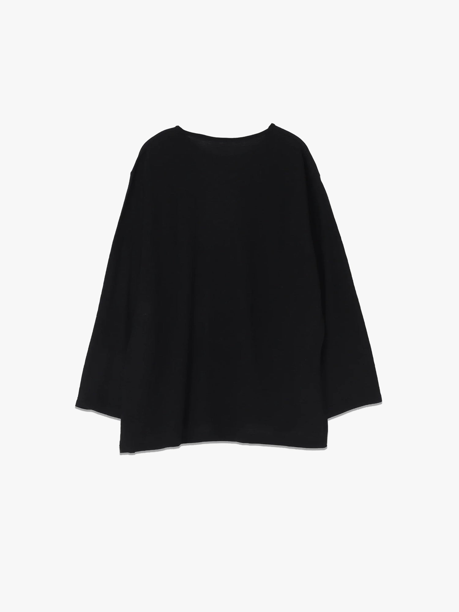 This long-sleeve top is crafted from 100% wool featuring a design with side slits. The fibers forming the yarn create a structure similar to a woolen yarn, resulting in a very lightweight and stretchy material.