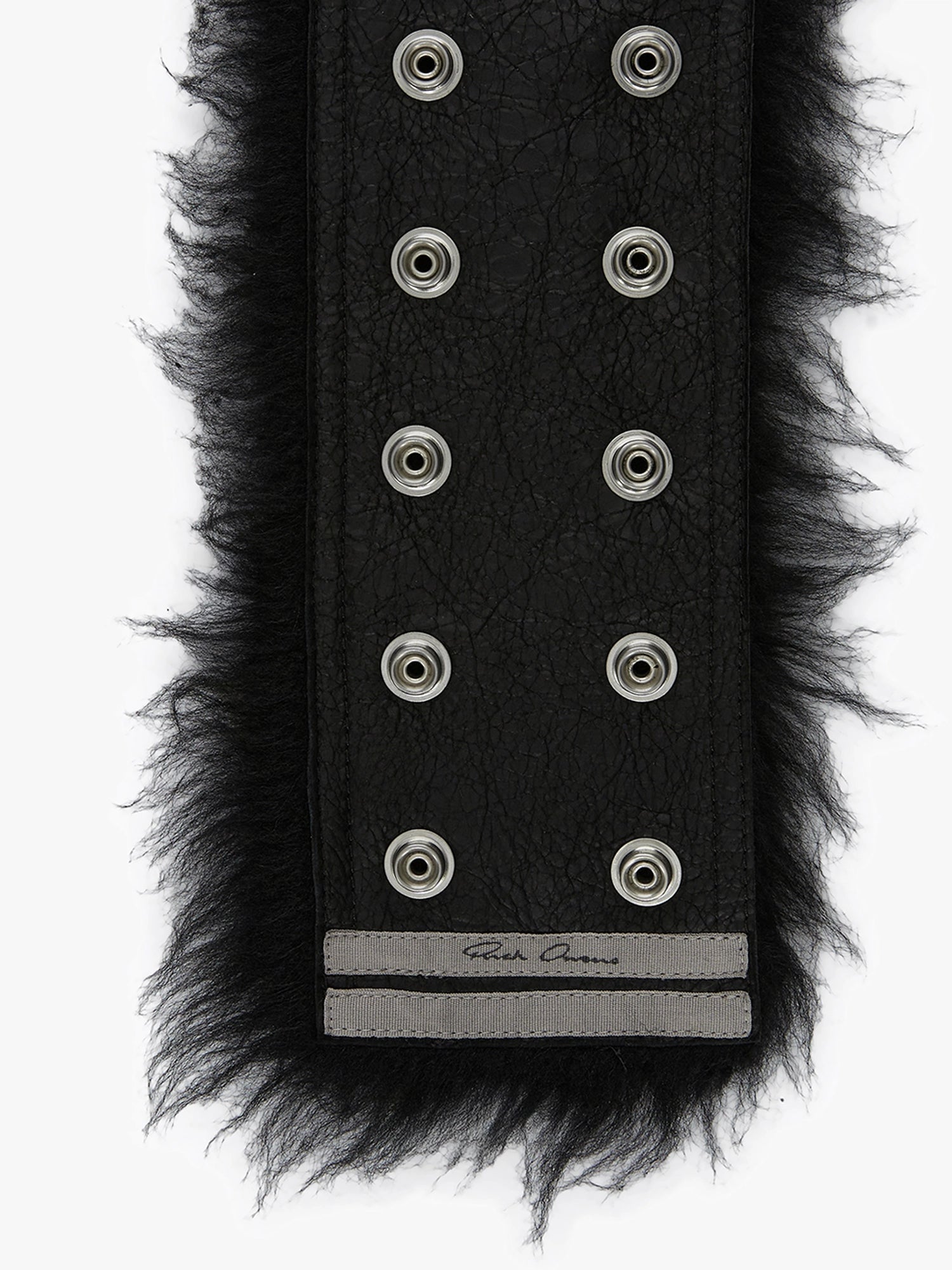 Rick Owens FW25 Concordians Strobe Neck Band in black curly shearling