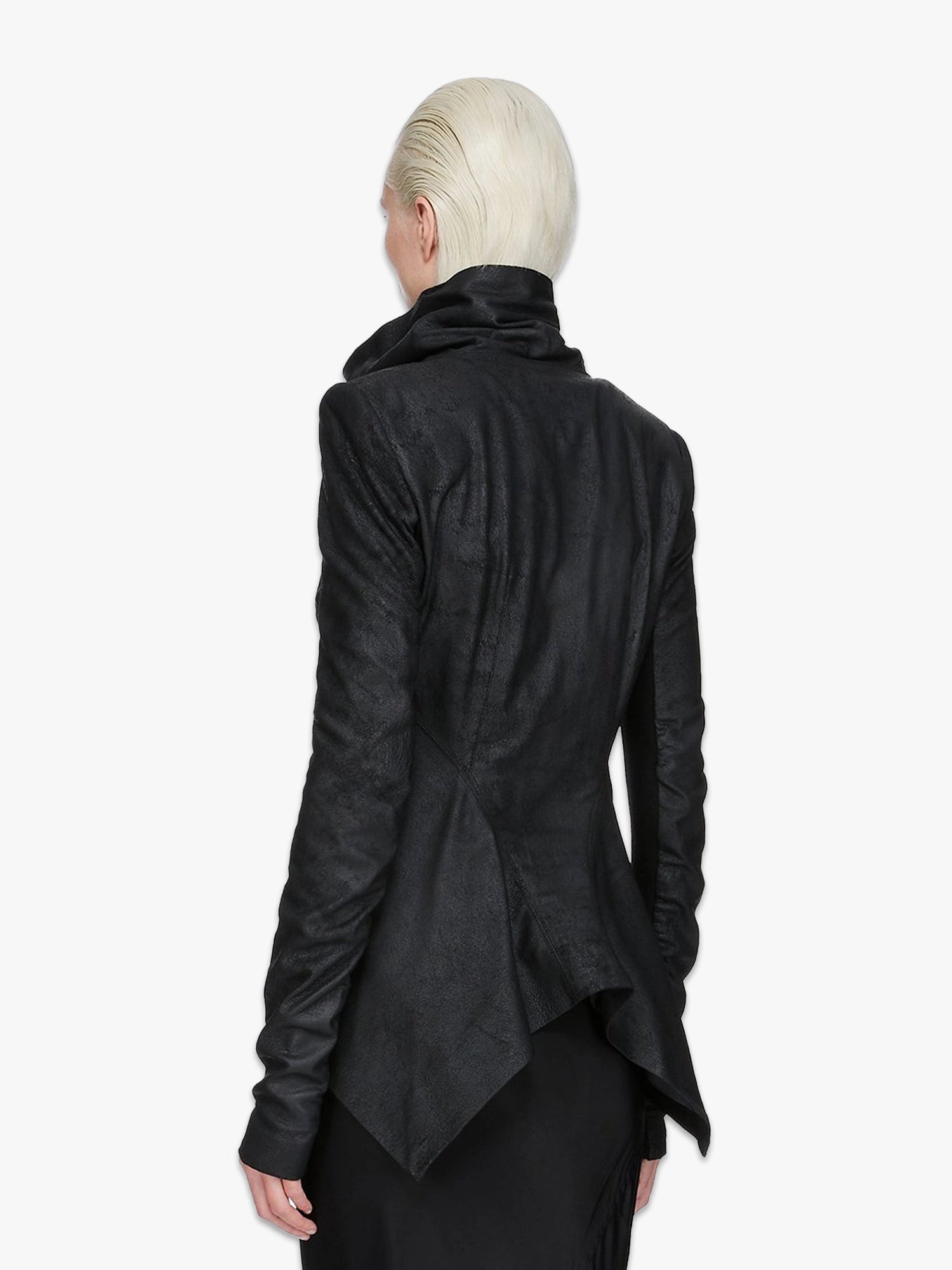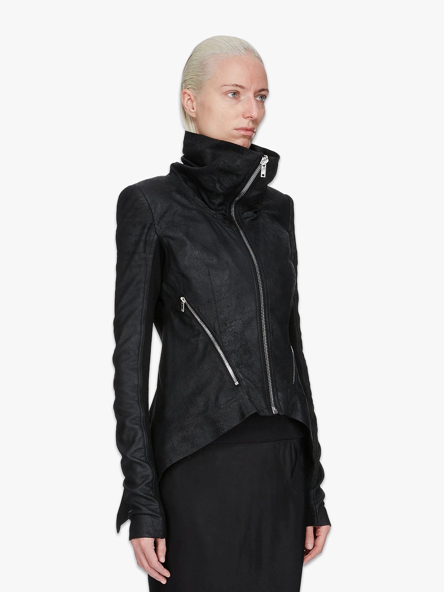 Rick Owens FW25 Concordians Zip Front Naska Biker in black blister lamb leather